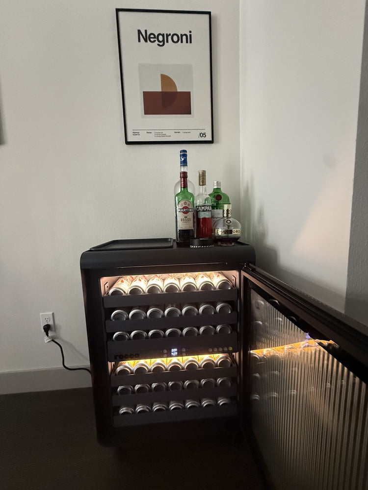 We recently bought the Rocco fridge, and it's quickly become the centerpiece of our living room. Its sleek, modern look fits perfectly with our contemporary decor. Beyond looks, it's incredibly functional – it easily stores all our drink cans, champagne and wine bottles, and even keeps track of our stock so we know exactly when to reorder. Best of all, it's whisper-quiet, making it a stylish and practical addition to our space. We absolutely love it!